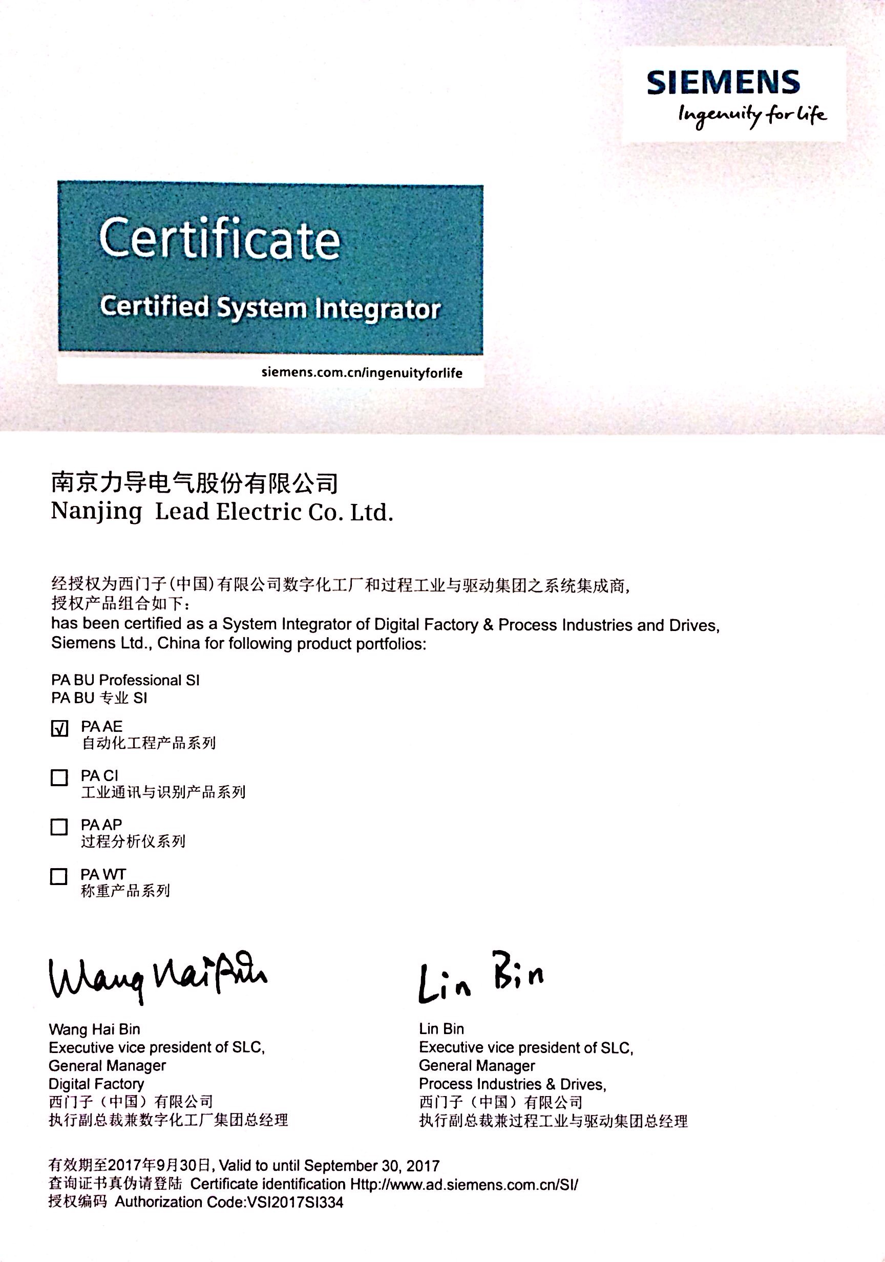 西門(mén)子系統(tǒng)集成商授權(quán)